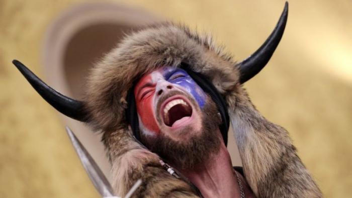 - الصورة: أحد مؤيدي ترامب الذين اقتحموا الكونغرس (بي بي سي)