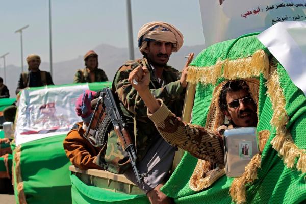 بحسب الحكومة الأمريكية، فإنّ جماعة الحوثي التي استولت على العاصمة اليمنية صنعاء في عامي 2014 و2015 هي وكيل آخر للجيش الإيراني. لكنّ إيران تقول إنها تدعم قضية الجماعة وتنفي تسليحها أو تدريبها. الحوثيون، الذين يطلق عليهم رسميًا أنصار الله، هم الزيديون، وهم طائفة شيعية تختلف عن الشيعة السائدة في إيران، وهي من أكثر الحلفاء استقلالية عن حلفاء طهران. ومع ذلك، فقد خدموا أجندة إيران لسنوات من خلال شنّ حرب بالصواريخ والطائرات بدون طيار ضد المملكة العربية السعودية.
