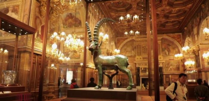 صورة أخرى للوعل البرونزي المنهوب من جنوب اليمن، الذي تمتلكه العائلة القطرية الحاكمة، في قصر فونتينبلو في فرنسا (2018)