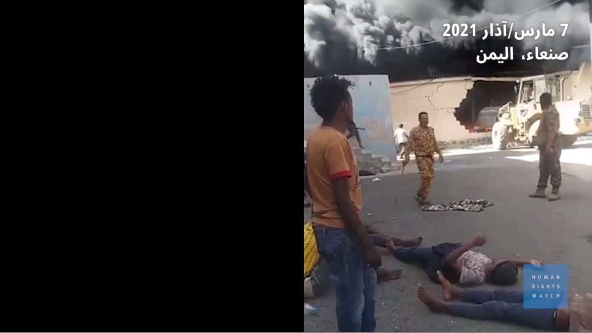 اتهمت منظمة هيومن رايتس ووتش ميليشيا الحوثي، المدعومة من إيران، بإحراق مركز لاحتجاز المهاجرين أودى بحياة العشرات مطلع الشهر الجاري بعد ما أطلقت مقذوفات على مكان تجمعهم، في صنعاء.