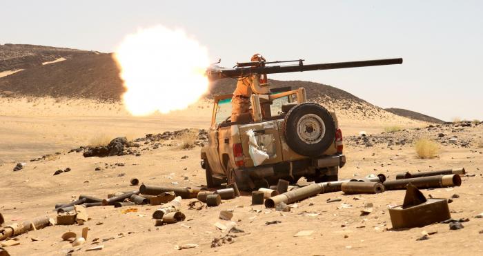 - الصورة (مقاتل حكومي يمني يطلق النار من على مركبة في موقع على خط المواجهة أثناء القتال ضد مقاتلي الحوثي في مأرب، اليمن، 9 مارس 2021 - رويترز)