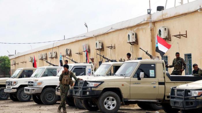 - الصورة: قوات الأمن الجنوبي، الموالية للمجلس الانتقالي الجنوبي تقف بجانب سيارات في 20 ديسمبر 2020. رويترز