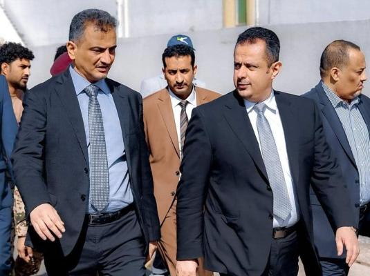 - الصورة: رئيس الوزراء اليمني، معين عبد الملك، ومحافظ عدن، لملس (رسمي)