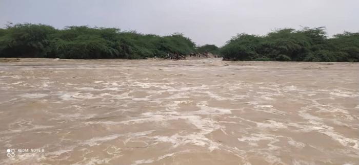 - الصورة: سيول جارفة في مديرية أحور بمحافظة أبين، الأربعاء، 21 يوليو 2021 (نشطاء)