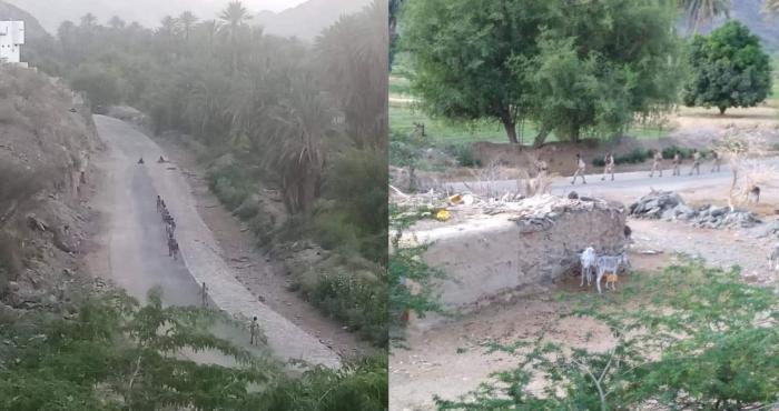 وأظهرت صورا، اطلع عليها سوث24، مقاتلين يعتقد أنهم من الحوثيين يمشون على الأقدام في طريق رئيسي بأحد بلدات مديرية بيحان.