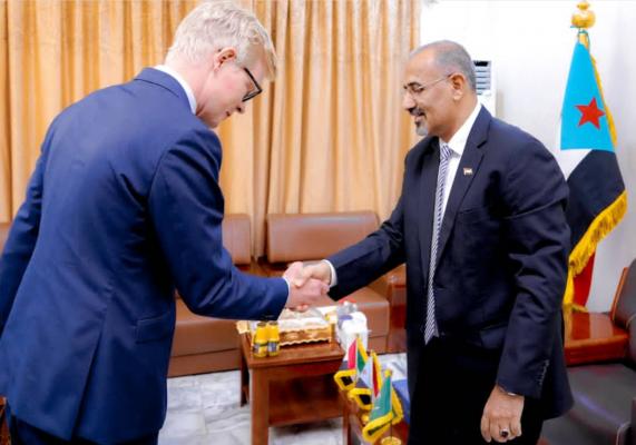 والتقى غروندبيرغ رئيس المجلس الانتقالي الجنوبي، عيدروس الزبيدي في مقر المجلس بمدينة التواهي.