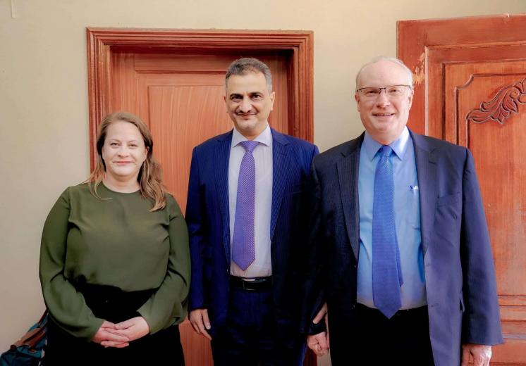 - الصورة: محافظ عدن بجوار ليندركينغ وكاثي ويستلي خلال زيارتهما إلى عدن، الاثنين (رسمي)