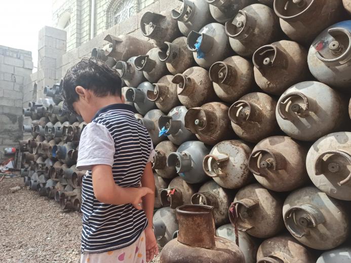 - الصورة: طفل بمحل لأسطوانات الغاز في المكلا بحضرموت 25 نوفمبر 2021 (سوث24، عبد الله الشادلي)