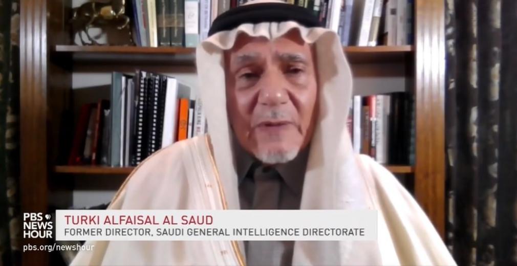 - الصورة للأمير السعودي تركي الفيصل، مقتطعة من اللقاء على قناة بي بي إس الأمريكية