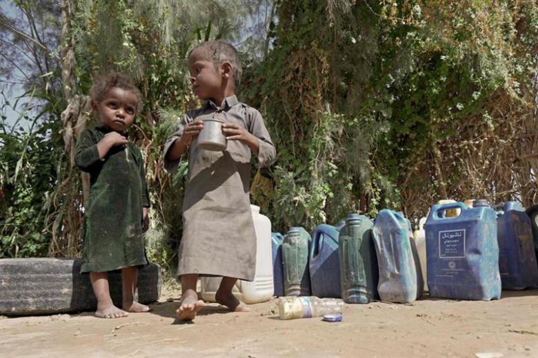 - أطفال في مخيم "السميا" للنازحين شرق مدينة مأرب، آخر معاقل الحكومة  اليمنية في شمال اليمن (الصورة: وكالة فرانس برس)