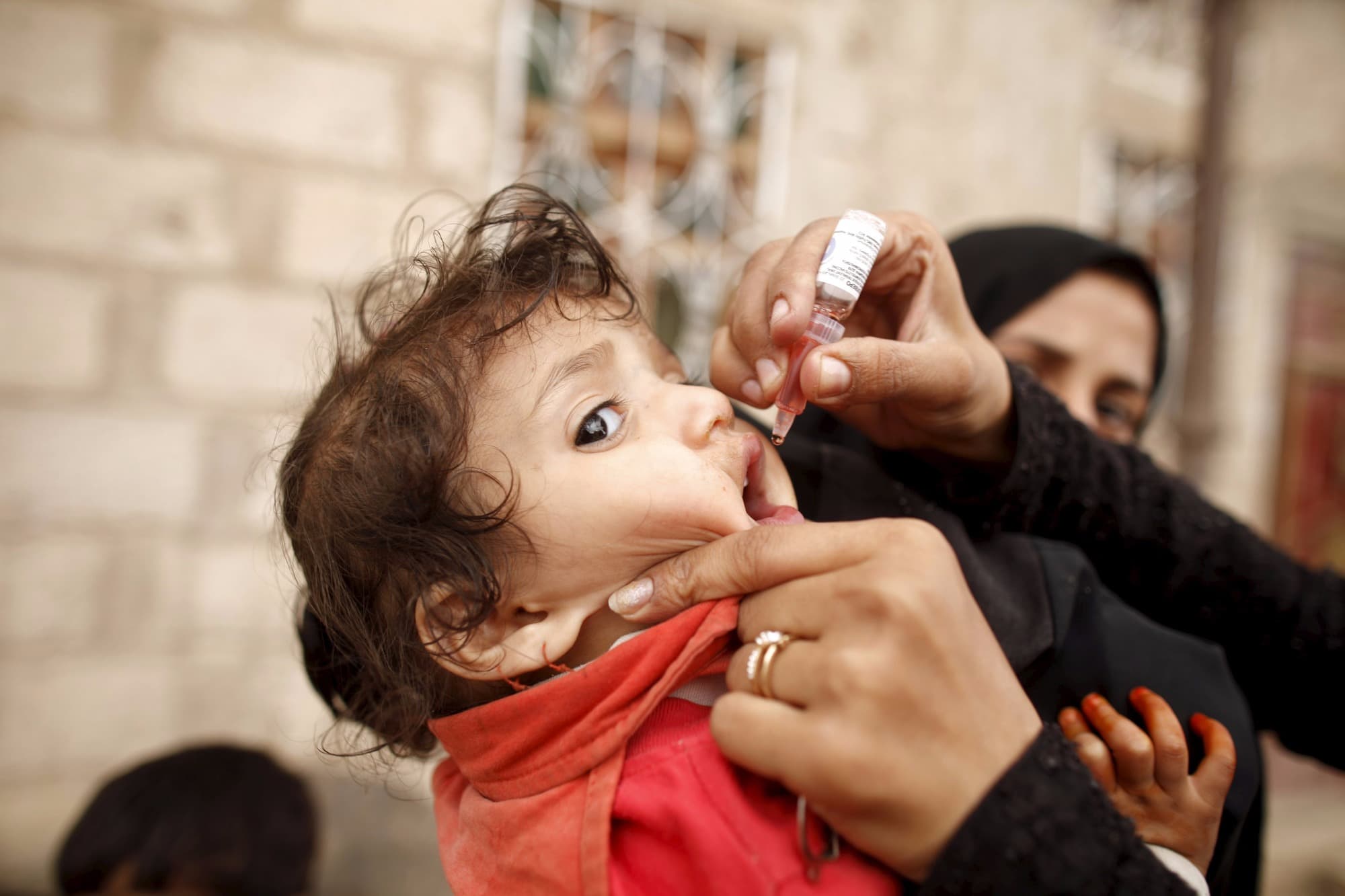 - الصورة: طفلة تتلقى التطعيم ضد شلل الأطفال في العاصمة صنعاء، 2017 (رويترز)