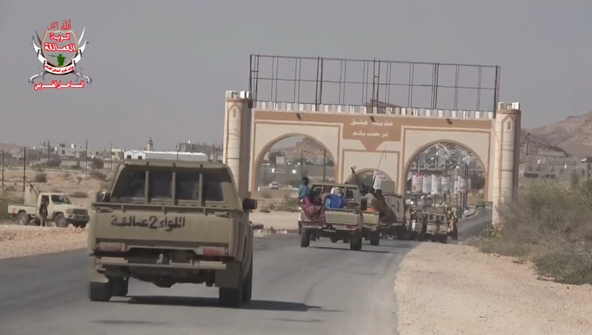 الصورة: قوات العمالقة الجنوبية في طريقها إلى عتق، عاصمة شبوة، 30 ديسمبر 2021 (إعلام العمالقة)