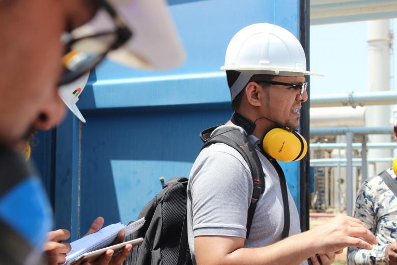الصورة: الصحفي بمركز سوث24، عبد الله الشادلي، في زيارة لمحطة الريان الكهربائية بمحافظة حضرموت (سوث24)
