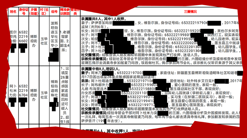 وتعرض الوثيقة تفاصيل الحياة الشخصية لأكثر من 3000 فرد من المقيمين في إقليم شينجيانغ.