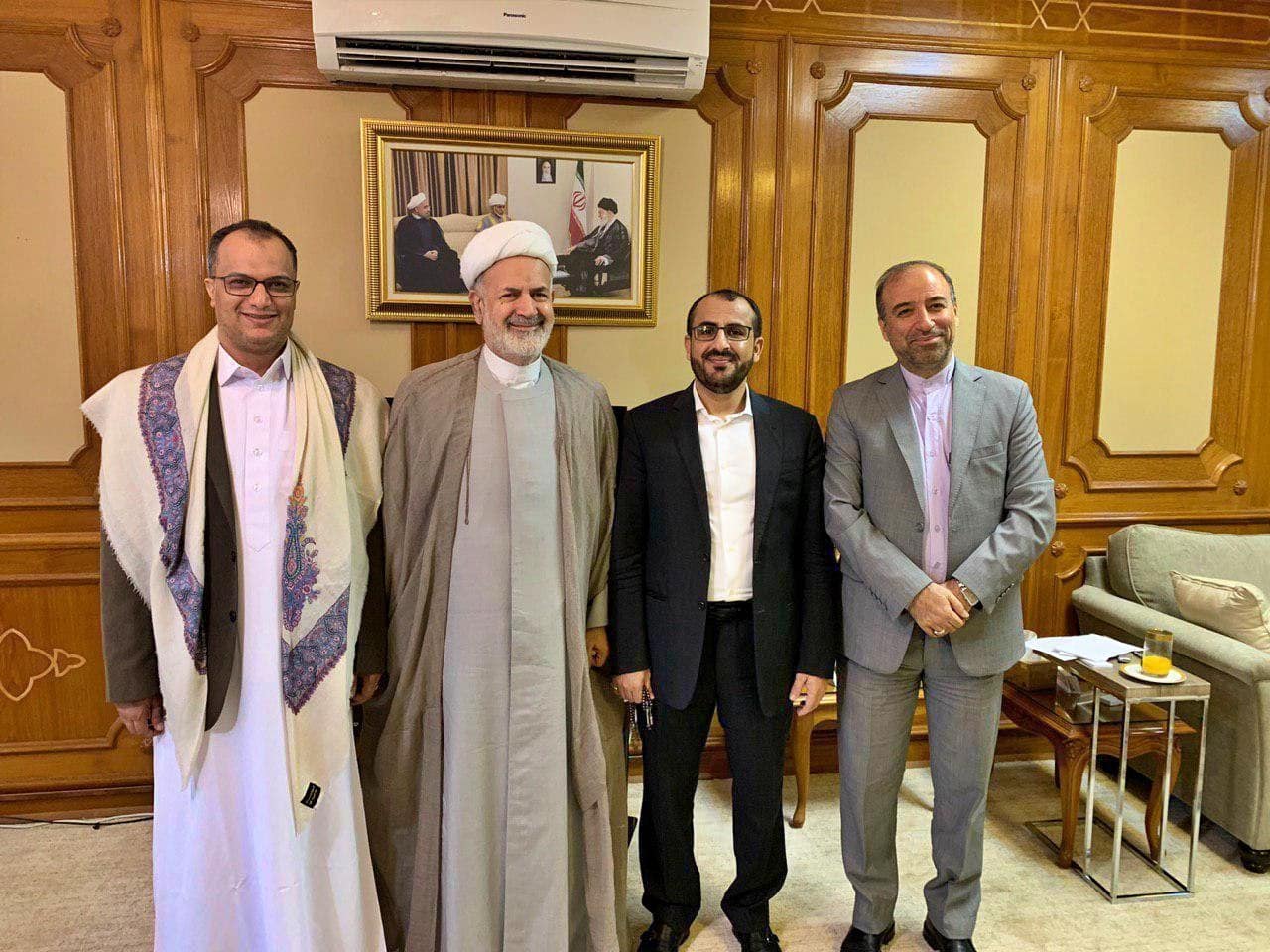 - الصورة: متحدث الحوثيين محمد عبد السلام يلتقي السفير الإيراني لدى سلطنة عمان في سفارة طهران في مسقط 18 يوليو 2019 (وكالة الصحافة اليمنية)