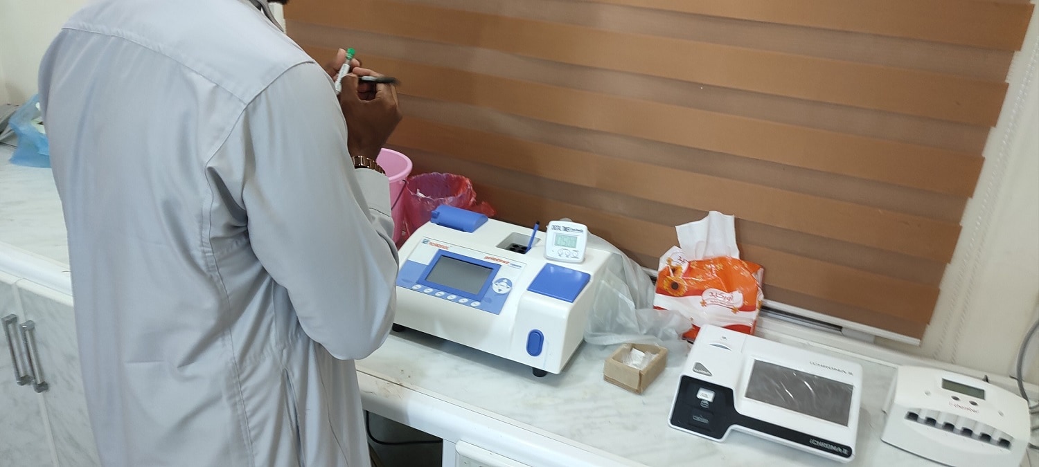 - الصورة: فني مختبرات في مؤسسة سدن بحضرموت يجري تحليلاُ 14 فبراير 2022 (سوث24، عبد الله الشادلي)