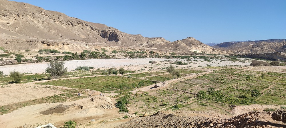 مزارع مواطنين يتم ريها بالآبار لتجنب المياه الجارية المعرضة للتلوث بوادي حجر في حضرموت، 28 أبريل 2022 (سوث24، عبد الله الشادلي)