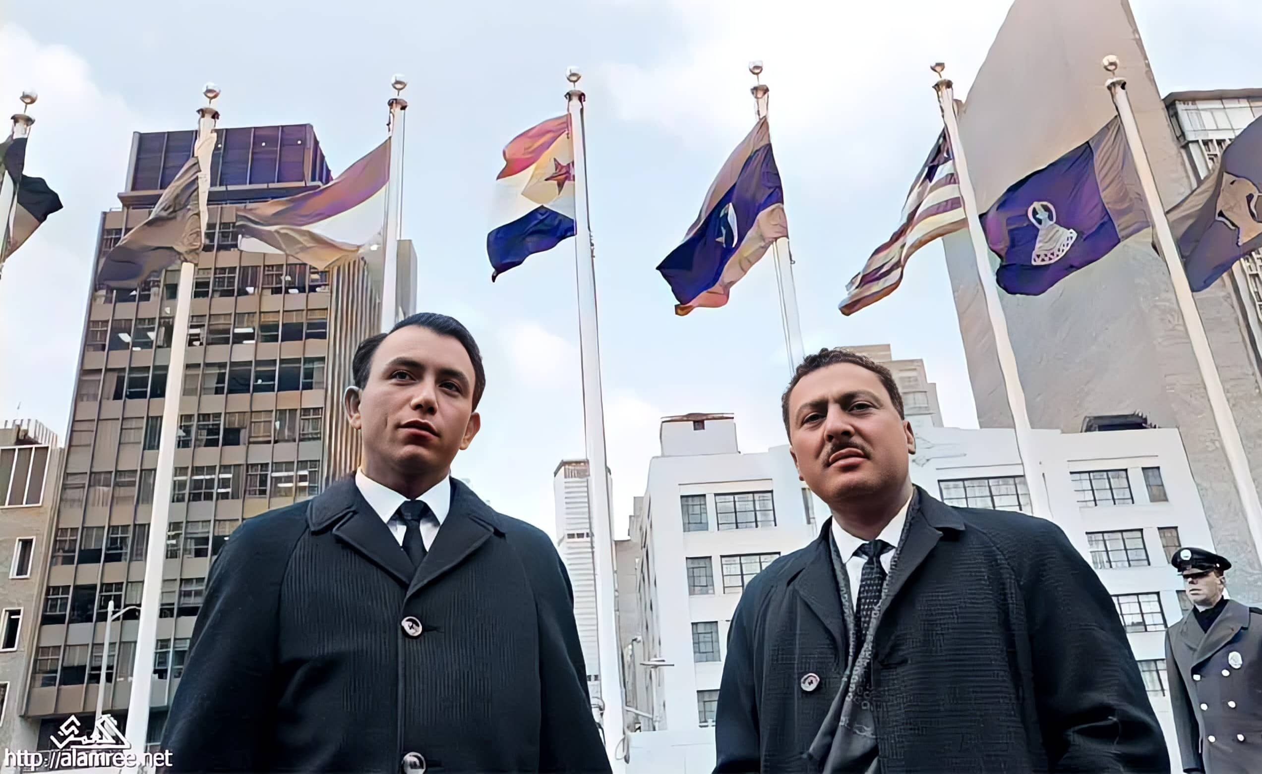 تم رفع علم جمهورية اليمن الجنوبيه الشعبية في مقر الأمم المتحدة الصوره من اليسار إلى اليمين: سيف أحمد الضالعي، وزير الشؤن الخارجية في جنوب اليمن، وأحمد علي مساعد، ممثل جنوب اليمن، 12 ديسبمر 1967 (العمري نت- تحسين وتلوين South24 Center)