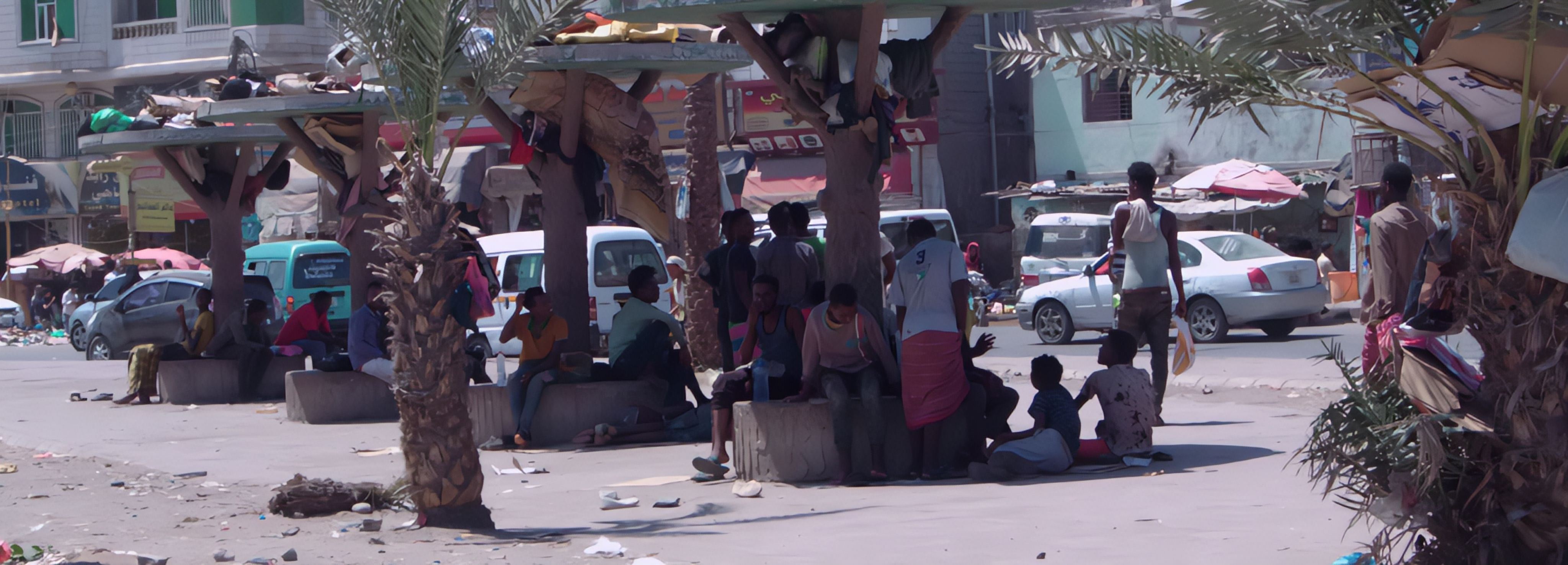 فتيان أفارقة يمارسون التسول في العاصمة عدن، 23 مايو 2023 (مركز سوث24)
