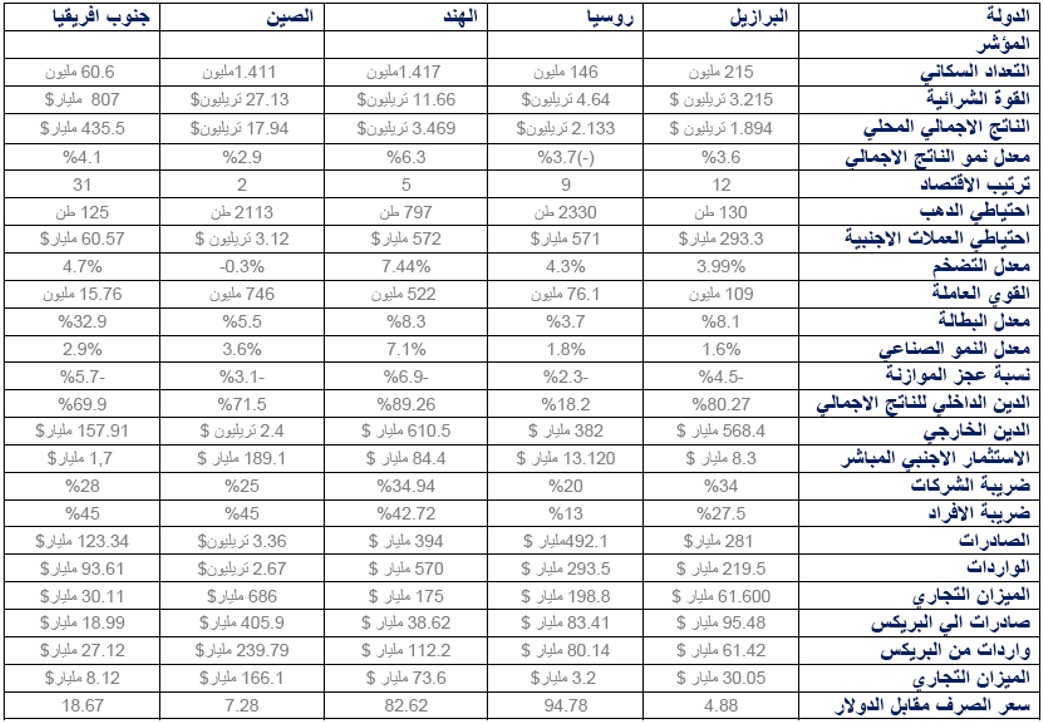المؤشرات الاقتصادية لدول البريكس (source: Think Tank Egypt TTE, 24/8/2023)