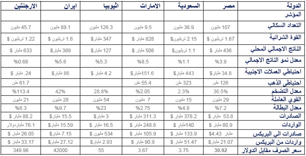 المؤشرات الاقتصادية للدول المنضمة حديثا لمجموعة البريكس (source: Think Tank Egypt – TTE, 24/8/2023)