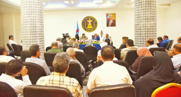 وترأس الاجتماع الذي عقد في مقر المجلس بعدن، اللواء الركن أحمد سعيد بن بريك، القائم بأعمال رئيس المجلس الانتقالي الجنوبي، رئيس الجمعية الوطنية، وحضره اللواء سالم السقطري، مساعد الأمين العام، واللواء فضل حسن، قائد المنطقة العسكرية الرابعة، واللواء محسن عسكر، مستشار رئيس المجلس الانتقالي للشؤون العسكرية.