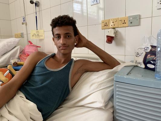 "خرجنا في دورية. نسي أحد أصدقائي وضع الأمان على بندقيته. لم أشعر بالألم ولكنني بدأت أحاول الهرب، ثم فقدت الوعي وجلبوني إلى هنا ". هذه هي إصابته الثانية. في المرة الأولى التي كان يجلس فيها مع مجموعة من الأصدقاء يمضغون القات المنشط الذي يستخدمه معظم الرجال في اليمن، وبدأ أحدهم يلعب مع دبوس قنبلة يدوية. أصيب عبد الخالق بشظايا في قدمه عندما انفجرت.