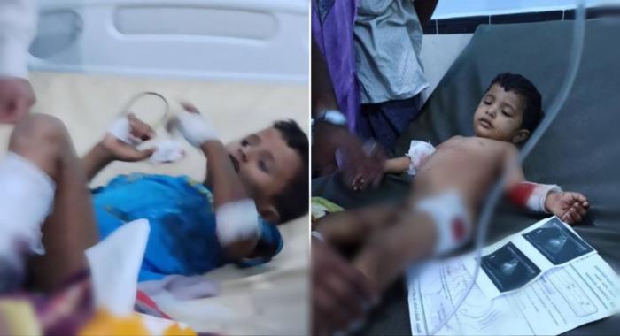 - الصورة للطفلين عبدالعزيز عوض صالح بوشمس وحاتم صالح سعيد بوشمس، أصيبا بقصف للقوات الخاصة في مديرية نصاب، شبوة، 13 يونيو 2020 (نشطاء)