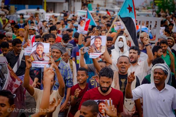 جماهير واسعة تتظاهر في شارع المعلا الرئيسي بعدن دعما للمجلس الانتقالي الجنوبي (فواز سلمان، رويترز)