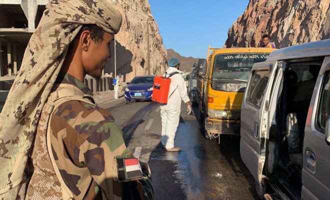 على الرغم من أن حكومة هادي وصفت عدن بأنها "مدينة موبوءة"، إلا أنّ الحكومة حاولت دفع قواتها من شقرة شرق أبين باتجاه عدن في مايو ويونيو، على أمل الاستيلاء عليها من المجلس الانتقالي الجنوبي. لكن القوات المتحالفة مع المجلس الانتقالي الجنوبي منعتهم من التقدم. وقد اتخذت هذه التحركات على الرغم من إعلان التحالف الذي تقوده السعودية في 9 أبريل لوقف إطلاق النار من جانب واحد على الصعيد الوطني استجابة لدعوة الأمين العام للأمم المتحدة أنطونيو غوتيريس إلى وقف عالمي لإطلاق النار خلال الوباء. بالنظر لتصرفات حكومة هادي، ورفض الحوثيين التام لوقف إطلاق النار، يستمر التصعيد العسكري في إعاقة الجهود الموحدة للسيطرة على الوباء في جميع أنحاء البلاد. منذ نهاية يونيو / حزيران، وبسبب تجدد المحادثات في الرياض، تم التوصل إلى وقف لإطلاق النار بين القوات الحكومية والقوات المتحالفة مع المجلس الانتقالي الجنوبي في أبين.