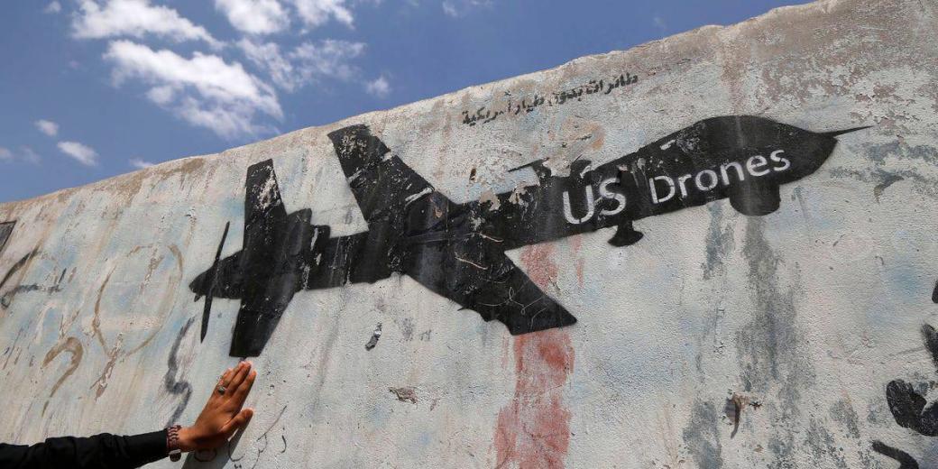 Graffiti protesting US drone strikes seen in September in Sanaa, Yemen. Mohammed Hamoud/Getty Images