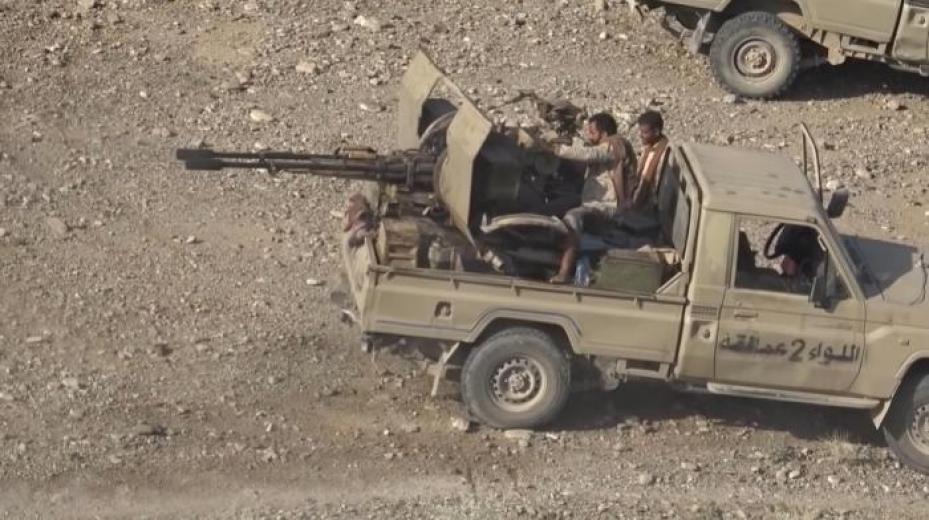 - Photo: Fighters of the 2nd Brigade, the Giants Forces , during their progress in "Wadi Saqm" in Maqbna District in Taiz Governorate, November 27, 2021 (Giants Media)