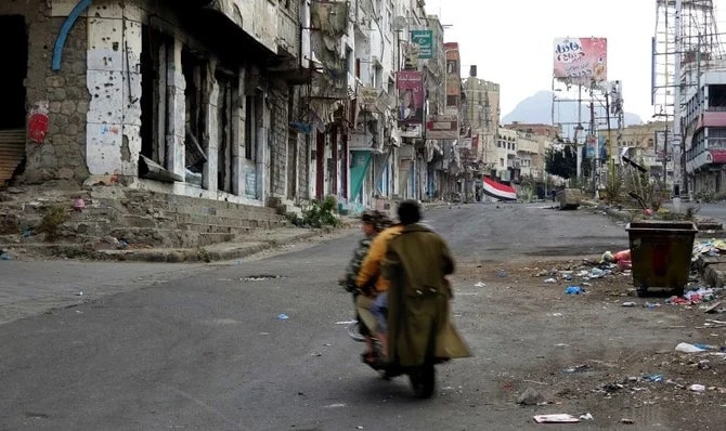 Yemenis maneuver through rubble strewn streets in the besieged city of Taiz (AP Photo)