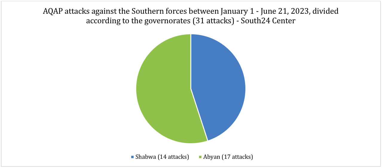 AQAP has remarkably escalated its attacks against the Southern forces since the beginning of this year. Until June 21, "South24 Center" documented about 31 attacks in the governorates of Abyan and Shabwa carried out by the extremist group.