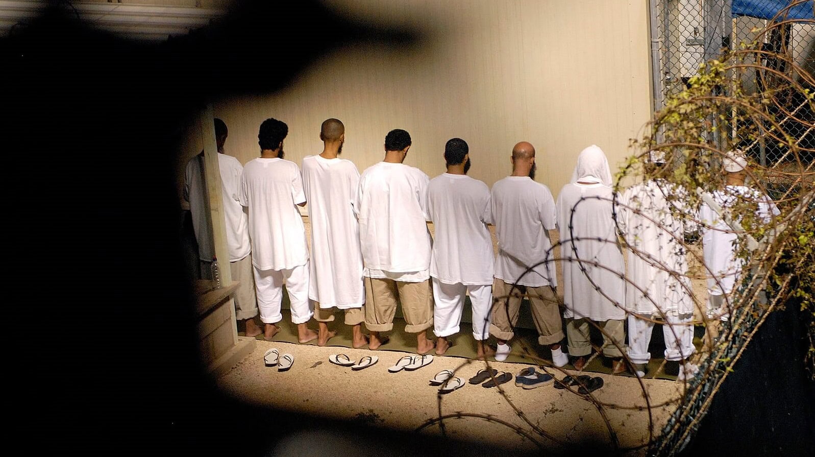 Guantanamo prisoners at prayer in October 2009 (Courtesy: ‘Forever Wars’, Marcos Hernandez)
