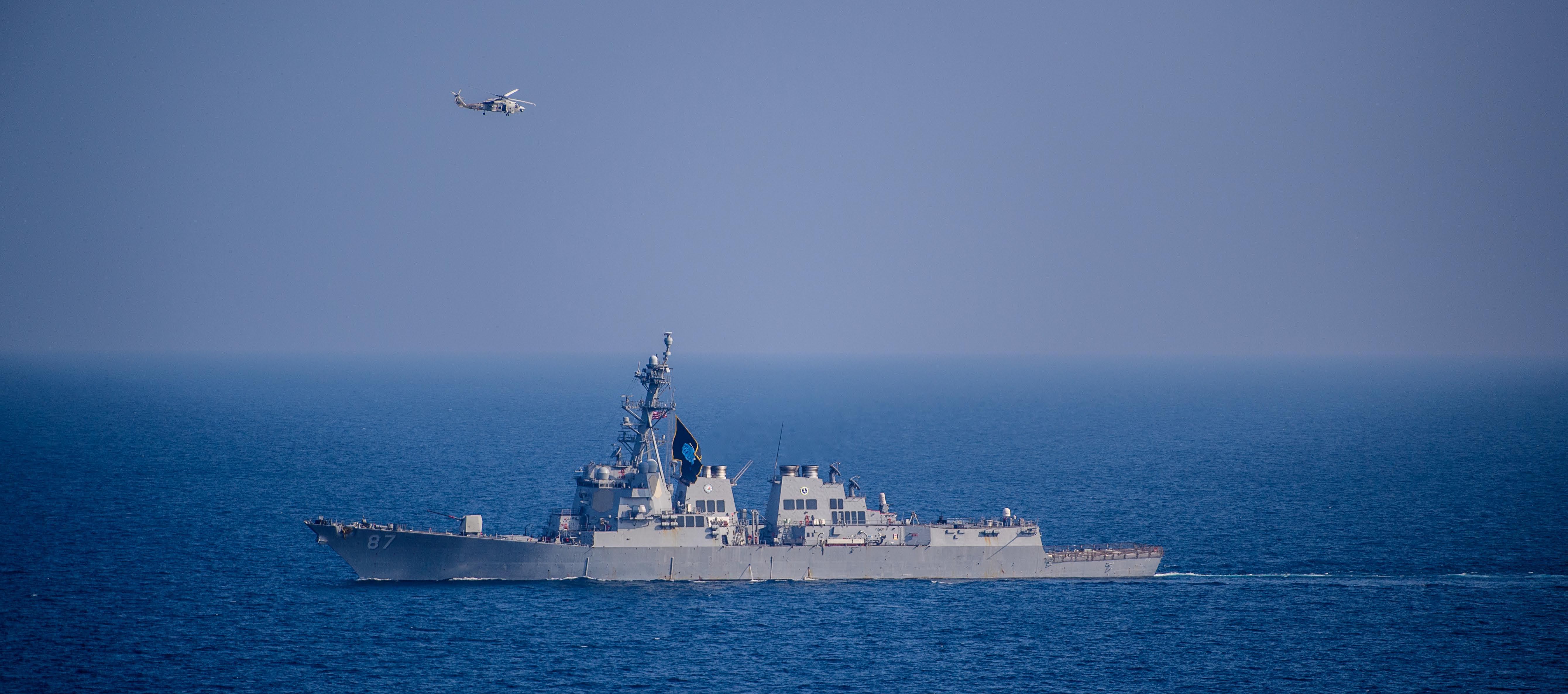 The guided-missile destroyer USS Mason (DDG-87) sails in the Gulf of Aden Nov. 25, 2023. US Navy Photo