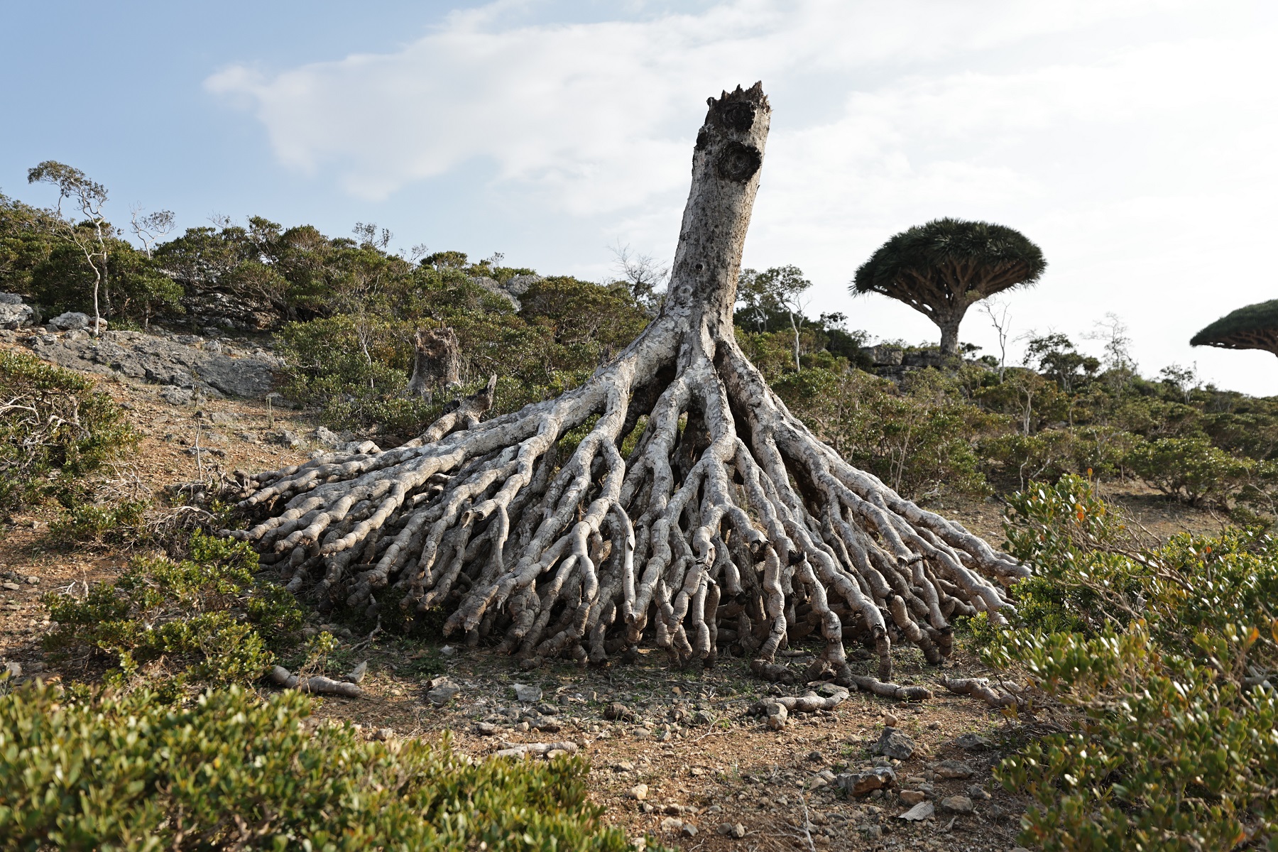 جذع شجرة دم الأخوين في محمية دكسم وسط جزيرة سقطرى، 7 نوفمبر 2025 (مركز سوث24)