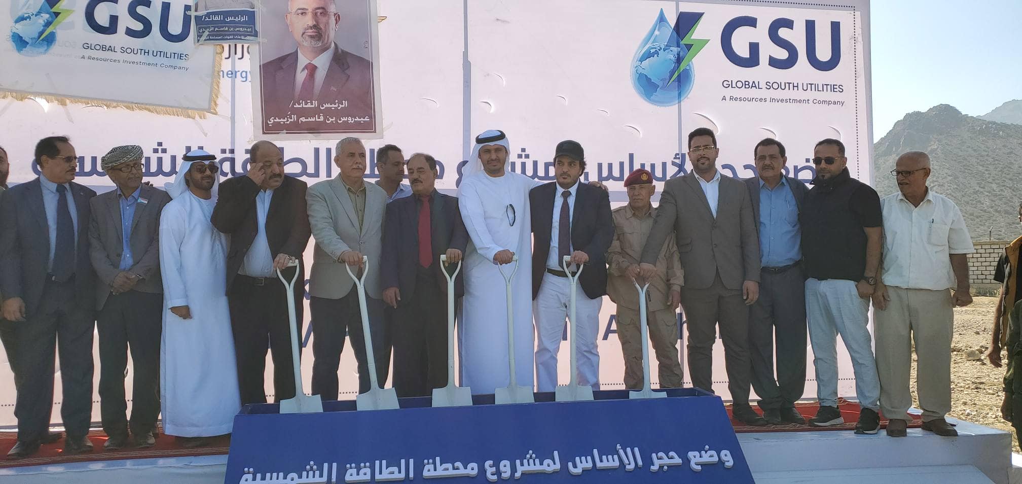 Laying the foundation stone for a 10-megawatt solar power plant in Dhalea, with Emirati support, December 23, 2025 (Aden Independent Channel).