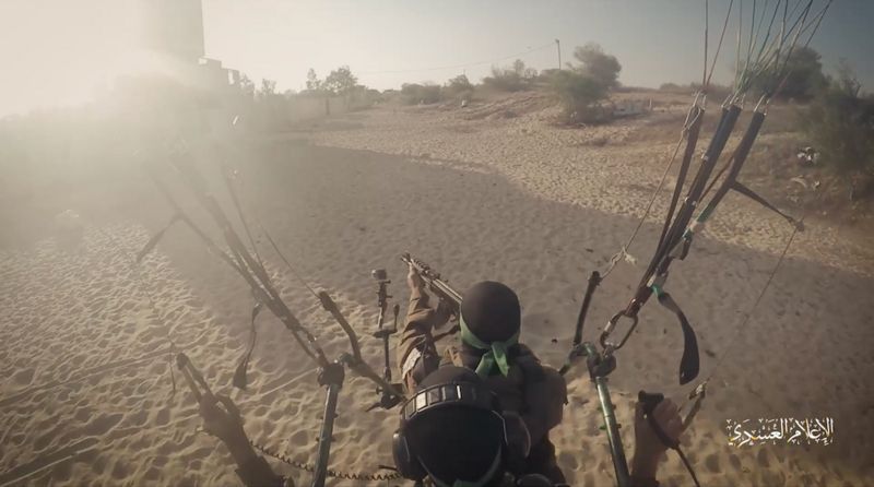 لقطات نشرها الإعلام العسكري لكتائب القسام لجندي على طائرة شراعية